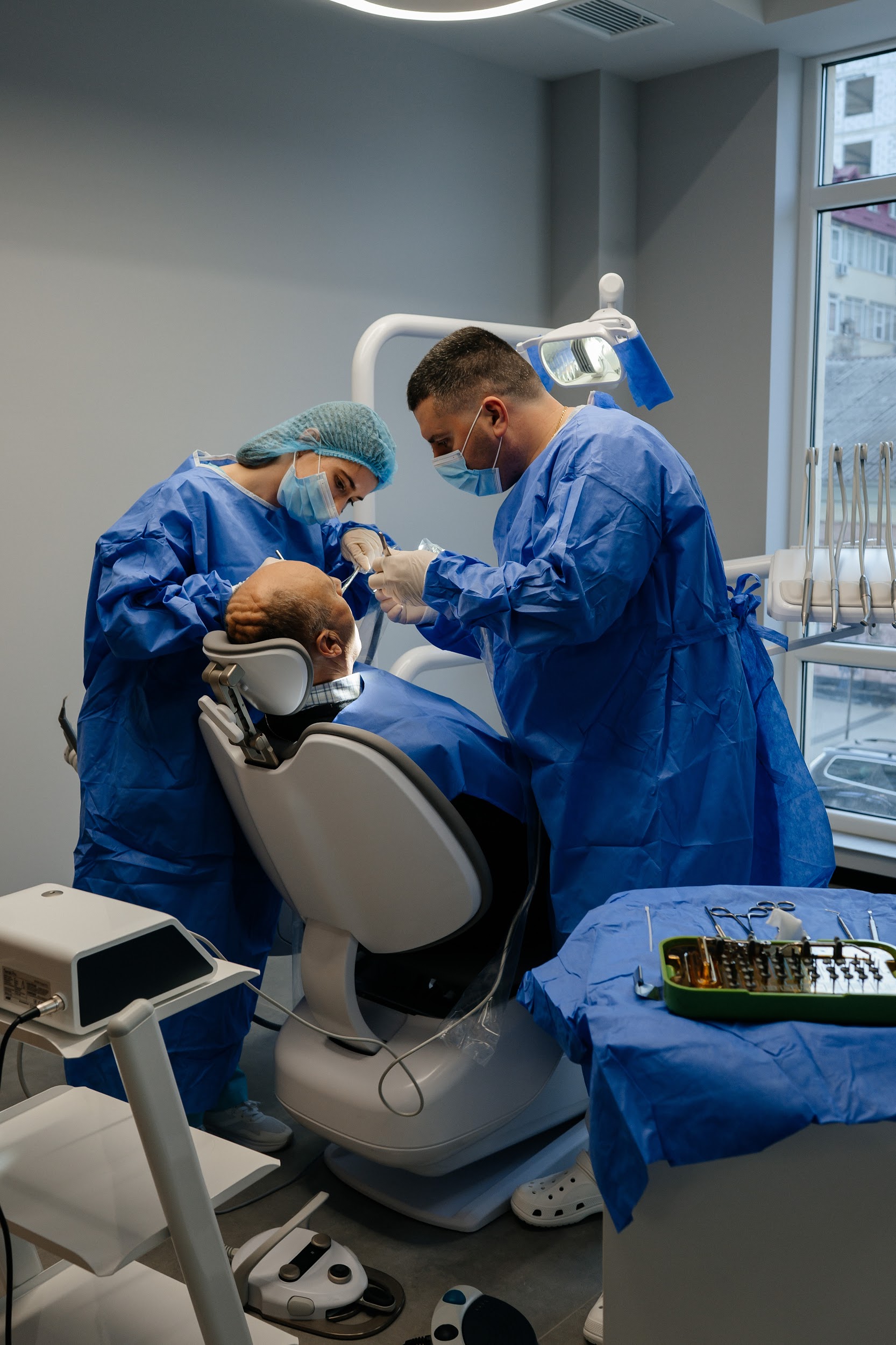 Tratament de albire controlat în cabinet, cu rezultate vizibile din prima ședință. Intensitatea se adaptează sensibilității dentare.